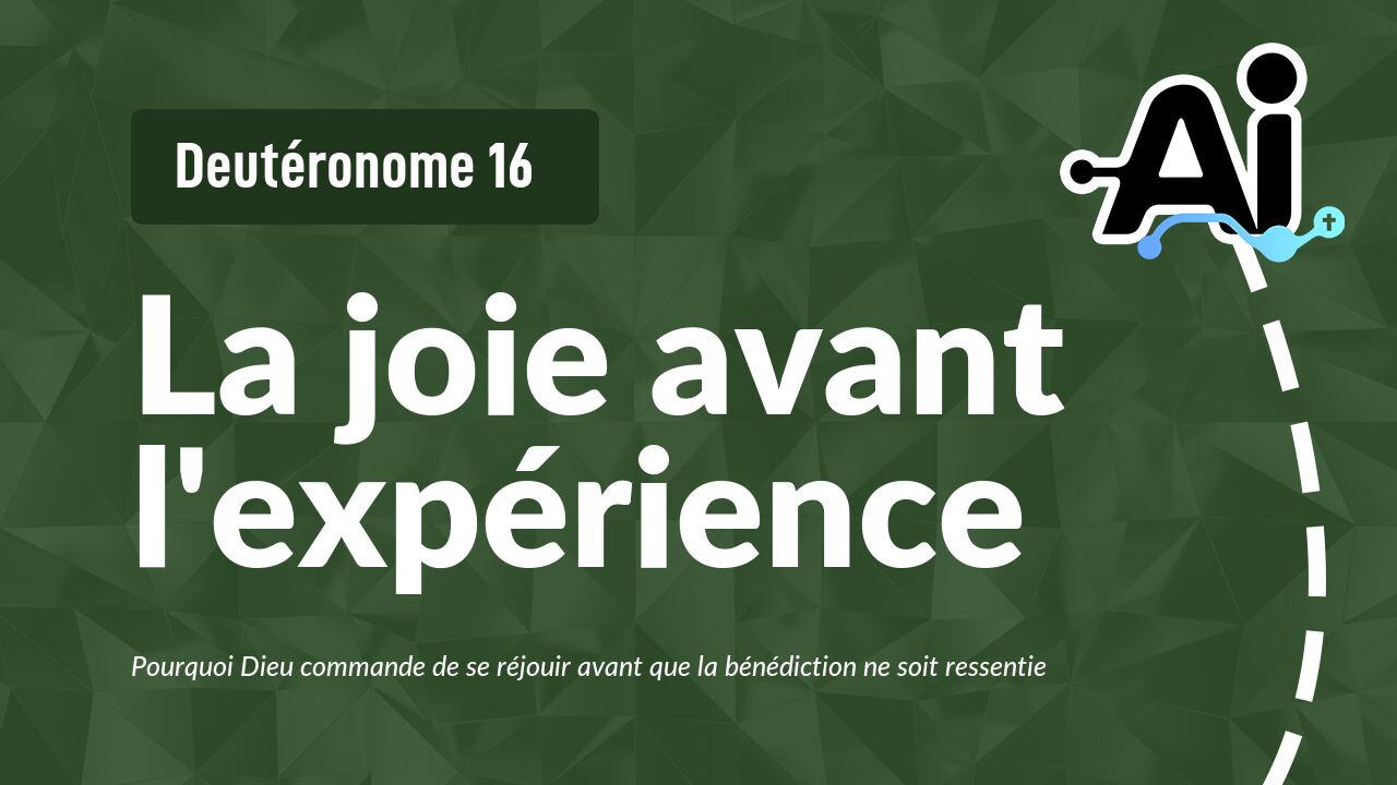 Dans Deutéronome 16, le commandement de se réjouir avant d'expérimenter l'accomplissement révèle la joie comme une posture délibérée, fondée sur la foi, qui façonne l'identité communautaire et témoigne de la fidélité de Dieu au-delà des circonstances.