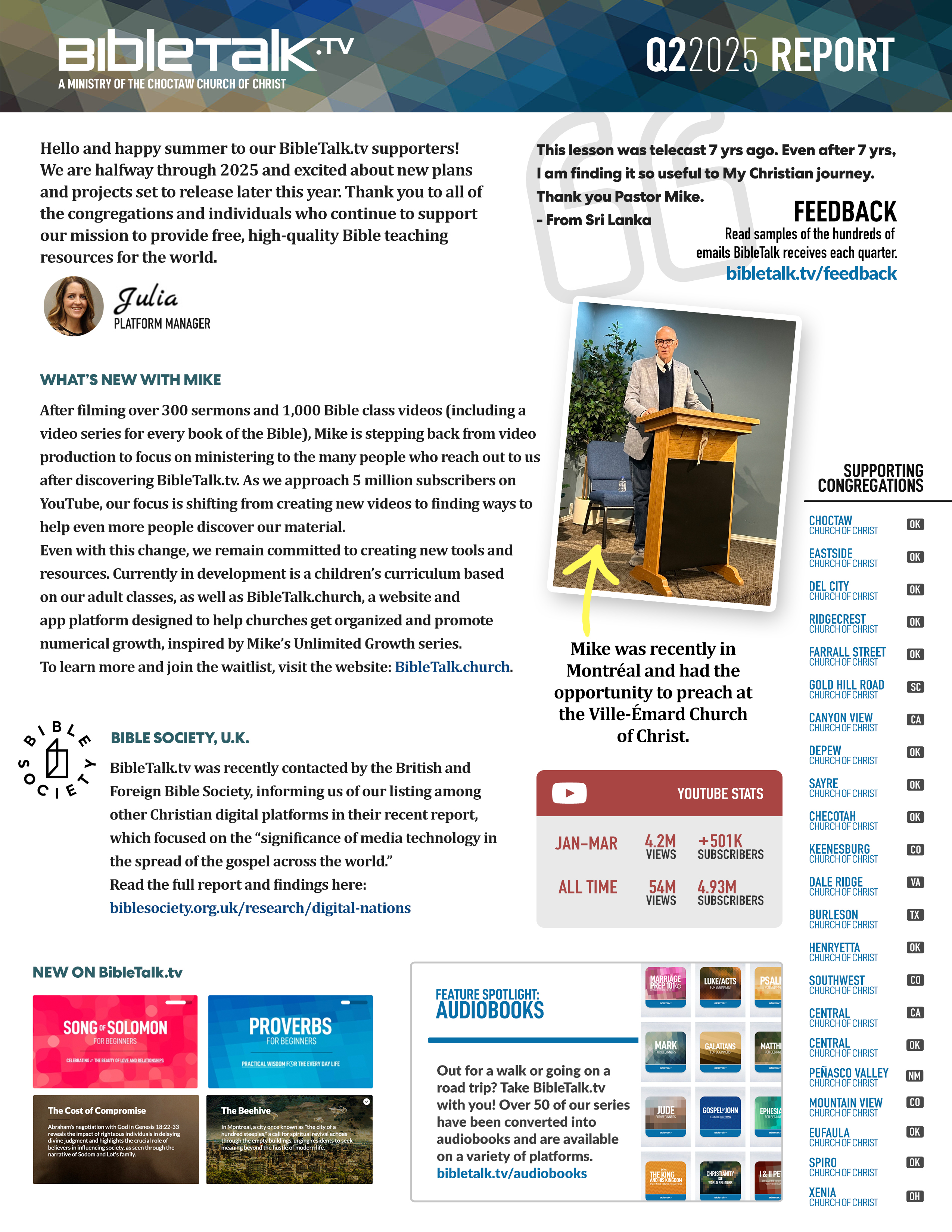 Chaque trimestre, nous produisons un rapport d'une page sur notre travail. Vous pouvez vous abonner pour les recevoir par courrier électronique sur votre