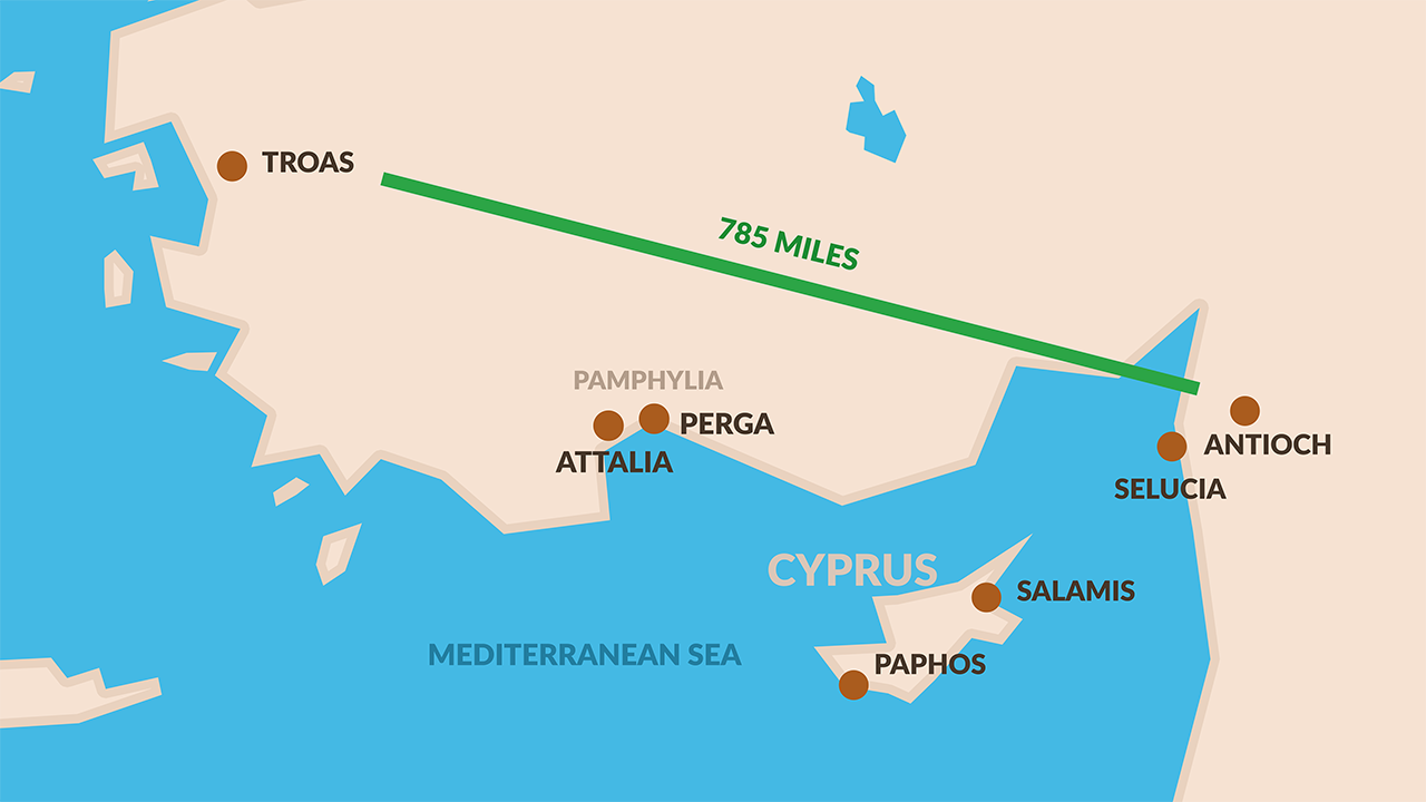 Distance from Antioch to Troas – Acts 16