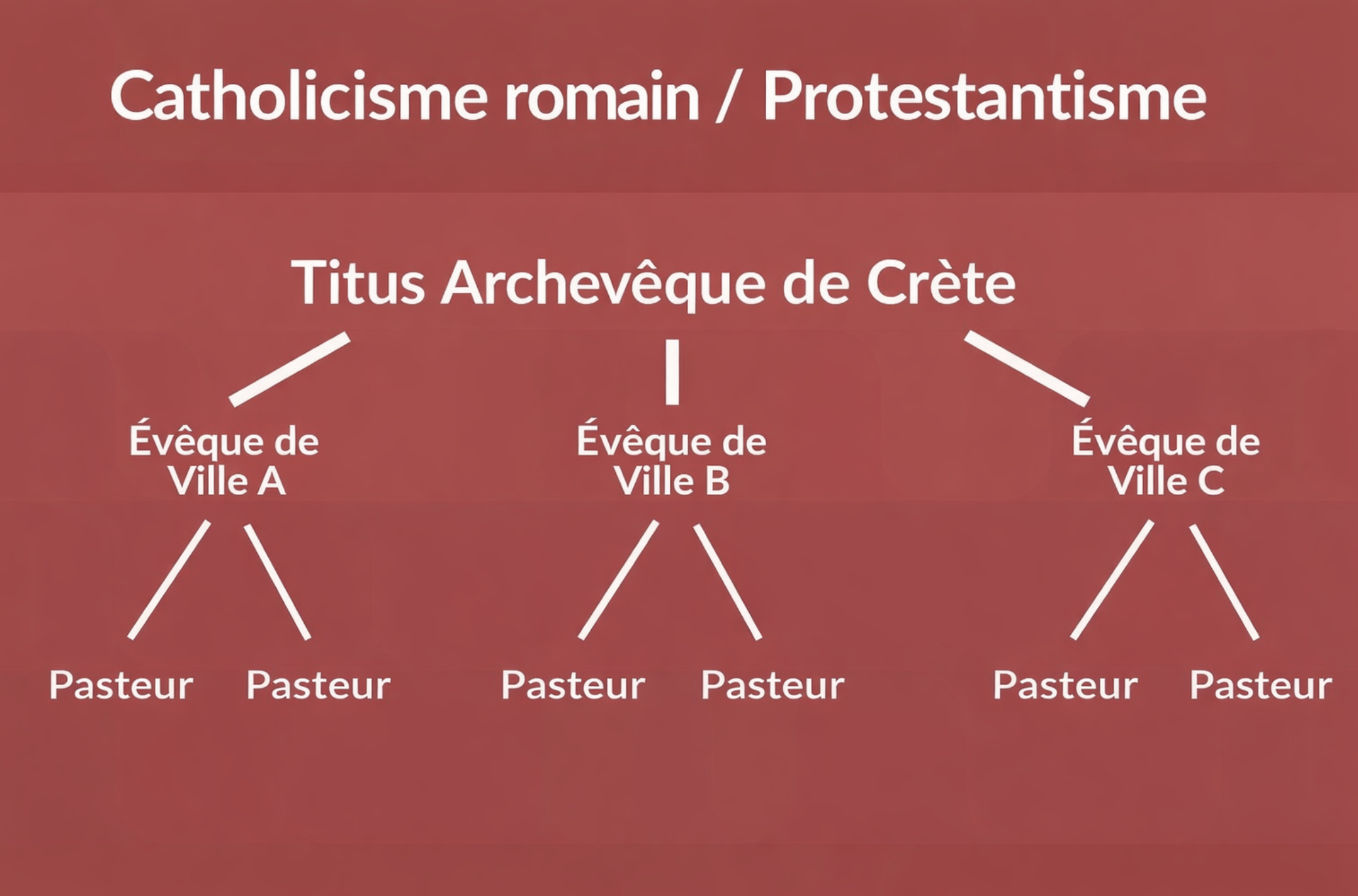 Ceci est ce que vous voyez si vous regardez ce passage d'un point de vue catholique ou protestant dénominationnel ; une structure qui correspond parfaitement à une idée préconçue concernant l'organisation de l'église. Cependant, si nous considérons le rôle et l'autorité de Tite d'un point de vue strictement biblique, en laissant le Nouveau Testament parler pour lui-même et s'interpréter lui-même, nous voyons une image différente :