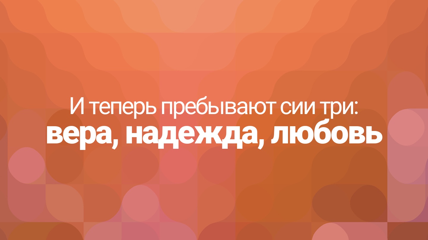 И теперь пребывают сии три: вера, надежда, любовь