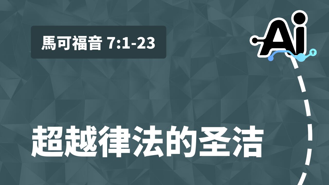 马可福音第7章显示耶稣揭露人所造的宗教,教导真正的污秽来自心里——不是来自食物或仪式——预示后来启示的新约自由,同时肯定圣洁是内在的,不是外在的现实。