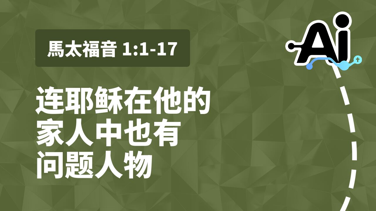 马太福音第一章中耶稣的家谱显示,神通过不完美的人和破碎的家族历史来带来救赎和盼望给我们自己。